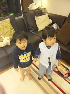 双子君達、仲良く分けて食べてました。